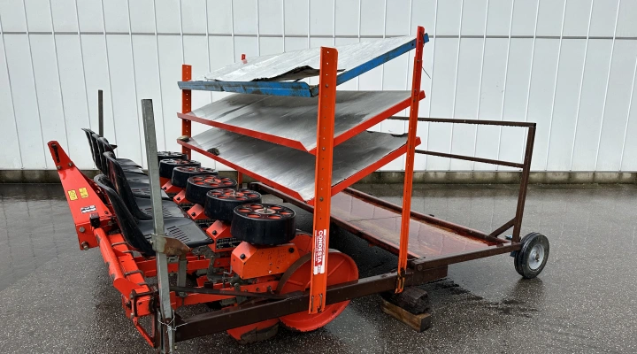 This semi-automatic transplanter has been specifically designed for vegetables, flowers, nursery and tobacco seedlings with conical or pyramidal peat-balled roots.