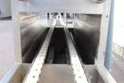 - A chain transports the boxes through the washer