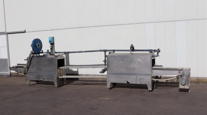 - In the first units the boxes go throug a whirlpool with air support. The bubbles help to clean the vegetables when the boxes are in the water.