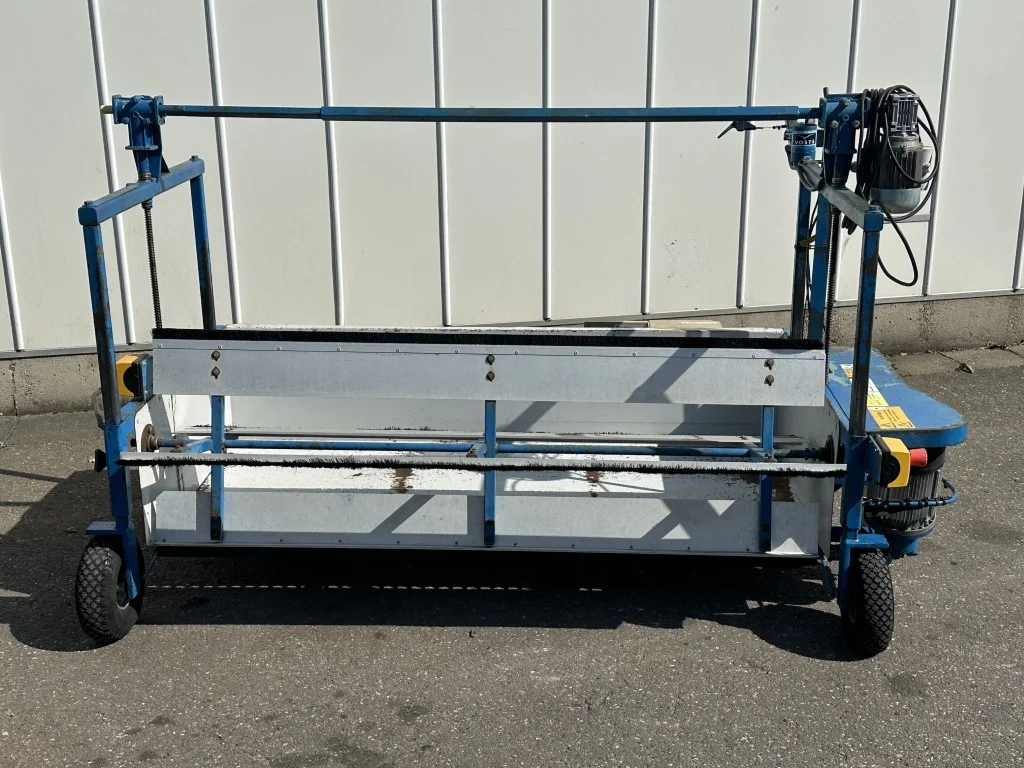 This VTW pruning machine was specially developed for topping various plant crops. The basis of this pruning machine are two moving blades driven by a electric motor. These blades are razor-sharp and ensure a very sharp cut of the crop. The whole unit is mounted in a steel frame that is infinitely adjustable in height. Behind the blade is a full-width collection tray where the cuttings are fed through a reel. This reel is also driven by a electric motor