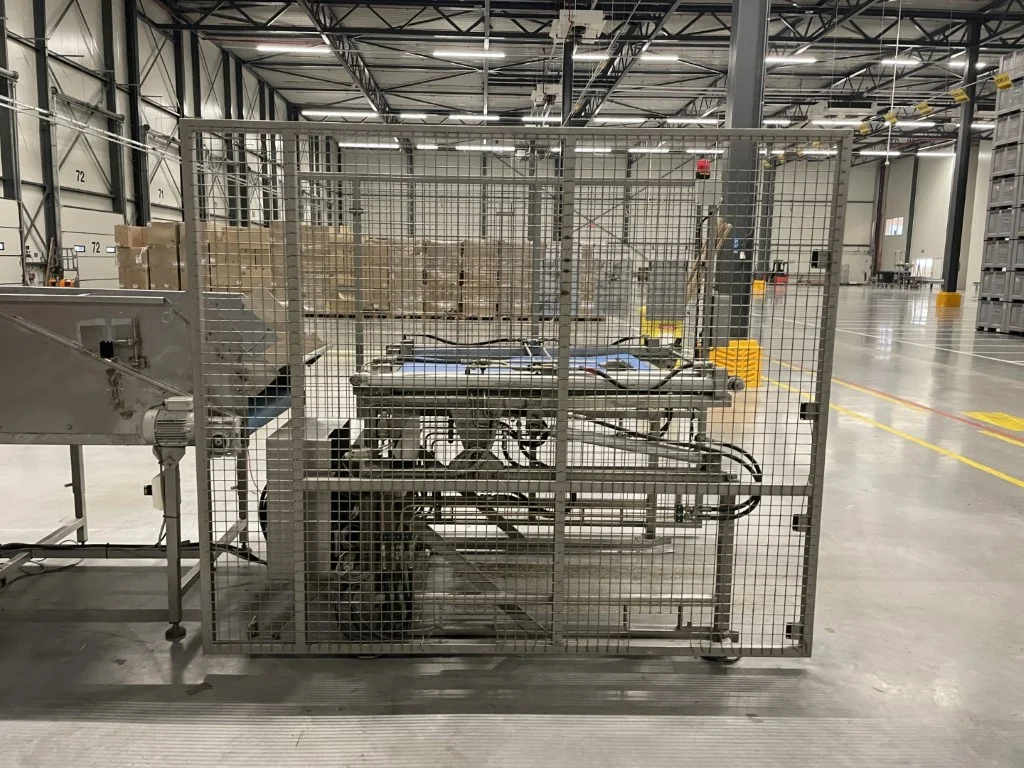 The ACB stainless steel box tipper with dosing conveyor is a robust solution designed for gently unloading produce from boxes and feeding it into processing lines.