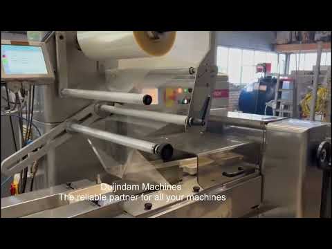 This flowpacker is suitable to pack various products on foodtainer trays, such as fruit and vegatables. This machine is used to pack vine tomatoes on a tray together with a Sorma LCP-128A weigher.