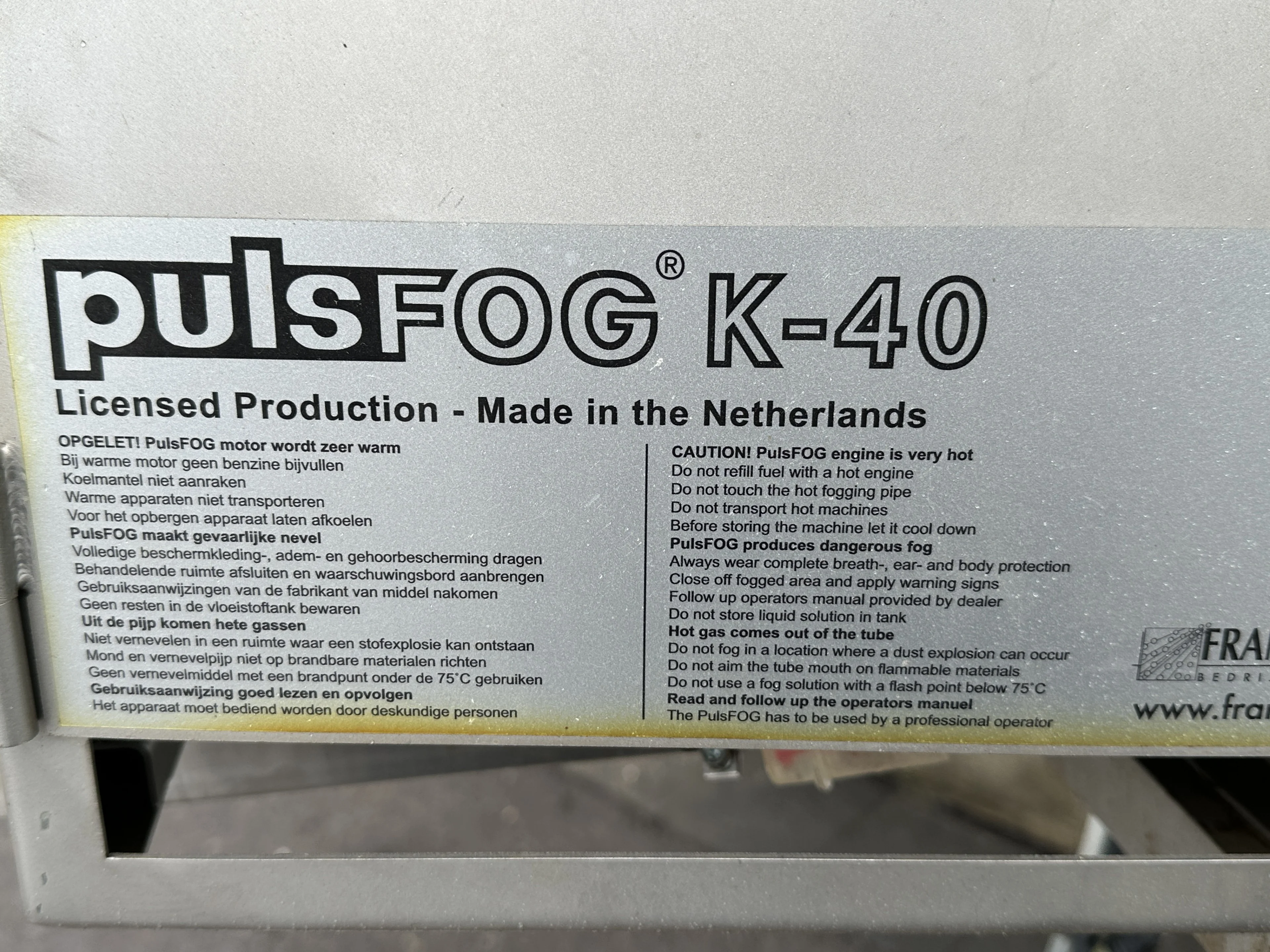The Pulsfog K4 is the biggest device from the series of fogging machines. The large amount of power and the enormous capacity make the K4 suitable for professional usage. The Pulsfog K4 is especially suitable for: