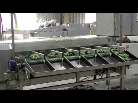 The cucumbers can be graded by length, thickness, shape, weight and coloration. The machine has a modular construction and can be easily extended.