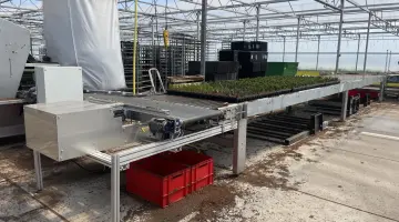 Новый буферный конвейер с толкателем для горшечных растений и поддонов