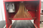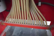 The seeds fall down in a pipe that distrebutes the seeds over the output hoses.