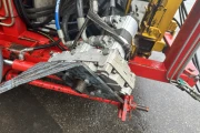 As can be seen in the photos, the right-hand clamping band is worn out; there is a new one of this with the machine, which we also mount on the machine. The small conveyor, where the leek is being placed against, will also be renewed.