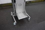 A stack of buckets is easily pushed onto the plateau that rises up to the right working height. When the machine is without buckets, the empty platform goes automaticly back to ground level.
