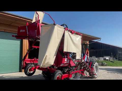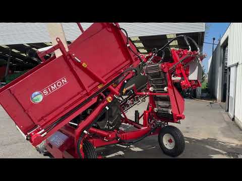 SIMON S3B — это навесной однорядный морковоуборочный комбайн, разработанный для эффективной уборки корнеплодов. Он отличается компактной конструкцией, простотой в обращении и большой высотой разгрузки, что делает его пригодным для различных полевых условий. Машина оснащена приемным бункером, установленным с помощью трехточечной навесной системы.